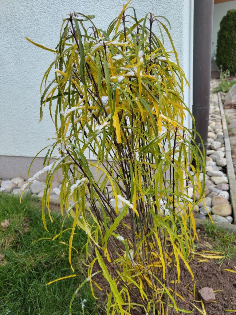 Eines meiner liebsten Gehölze für eher beengte Gegebenheiten ist das Farnblättrige Pulverholz (bot. Rhamnus frangula „Fine Line“). Dieser ist durchaus anpassungsfähig und auch schnittverträglich, wodurch seine natürliche Endgröße von ca. 2,50 Metern auf etwa 1,50 Meter klein gehalten werden kann. Auch sein natürlicher Durchmesser von ca. 70 cm kann durch Schnitt auf ca. 40 cm klein gehalten werden. Das Farnblättrige Pulverholz, das auch Faulbaum genannt wird bietet einen attraktiven Jahresverlauf. Nach einem frischgrünen Blattaustrieb im Frühjahr blüht das Gehölz ca. Mai-Juni in einer Vielzahl sehr kleiner weißer Sternchen, die bei Bienen und anderen Insekten auf große Zustimmung stoßen. Aus den Blüten entwickeln sich kleine rote glänzende Beeren von der Größe eines großen Stecknadelkopfes. Im Herbst wechselt das sattgrüne Laub die Farbe zu einem strahlenden gelb, ehe es dann nach dem Laubfall ein interessant gemustertes Holz zeigt.