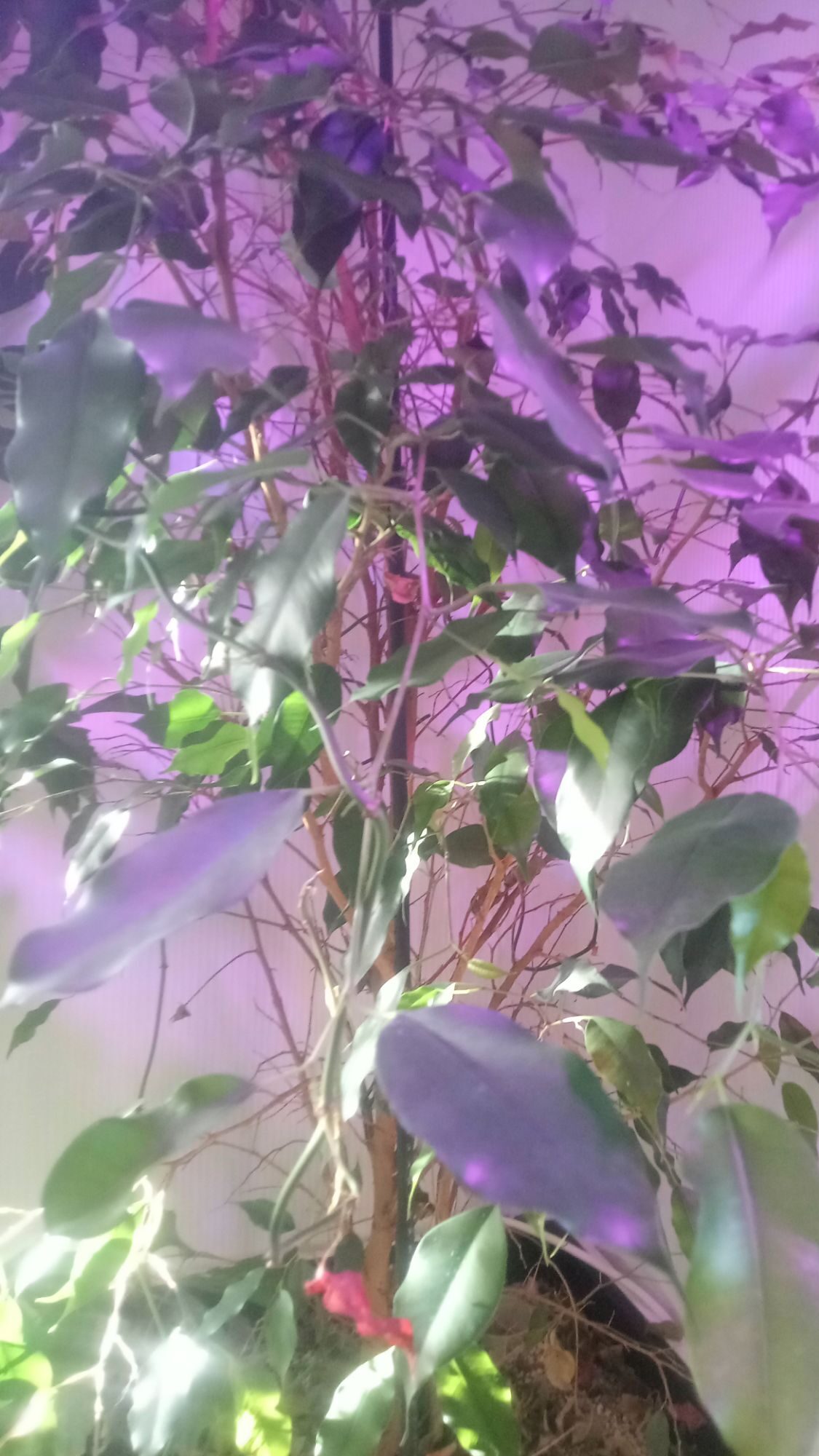Vom Küchenschrank aus bot das Wohnzimmer einen weiten Blick auf den üppig bewachsenen Balkon, so weit, dass man sogar die Spitze der großen Scheinzypresse im Nachbargarten sehen konnte. Es war sein Reich, und er fühlte sich wohl. Weil es ihm in seinem Topf an nichts fehlte, streckte er sich. Er streckte sich immer weiter und fand mit seinen Armen die Kante des Küchenschranks, auf dem er lebte. Sein Entdeckerdrang ließ ihn nicht zur Ruhe kommen, und er erkundete den Abgrund; seine Arme wuchsen immer weiter hinunter. Denn dort unten, das wusste er tief in seinem Innern, war ein Freund. Da stand ein Benjamini, den er von oben gerade so auf den Kopf blicken konnte.